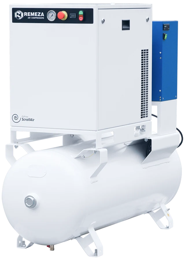 Мы поставляем только оригинальные спиральные компрессоры «Ремеза». Их стоимость зависит от производительности, мощности и дополнительного оснащения компрессорной установки.