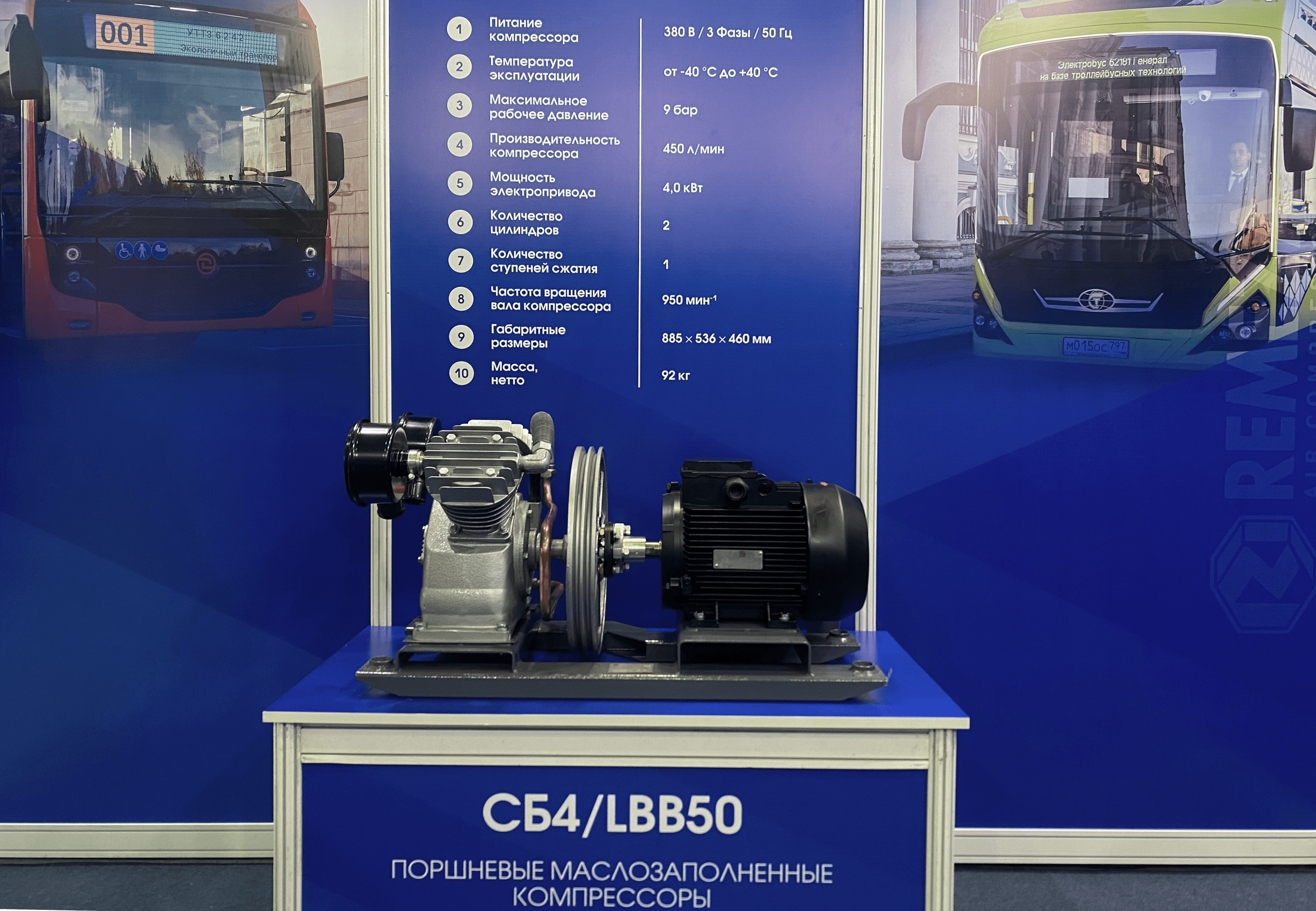 Торговый Дом «РЕМЕЗА», дочернее представительство ЗАО «Ремеза» (Беларусь) в России, представлял на выставке «ЭлектроТранс 2024» продукцию завода: спиральный компрессор АКС-0,4; поршневой компрессор LBB50; винтовой компрессор АКВ-0,4.